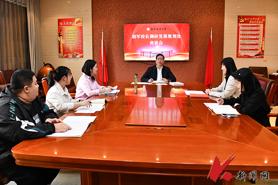 聽取工作匯報后,胡軍對發展規劃處取得的成績和當前工作給予肯定,并與參加調研人員就學校學科專業發展現狀、存在的問題和解決措施等進行了深入交流。