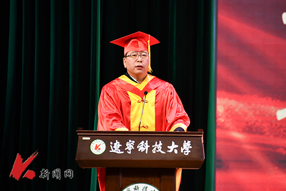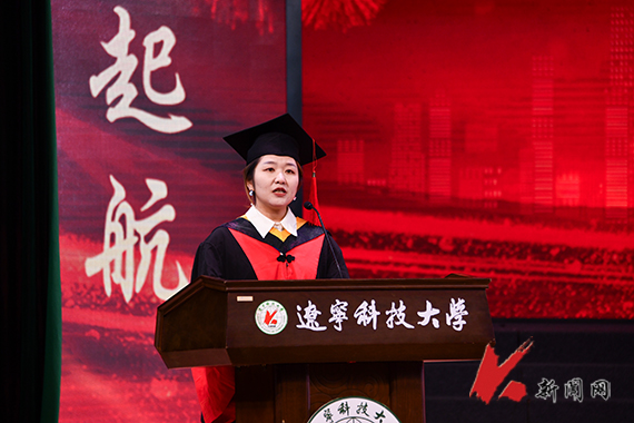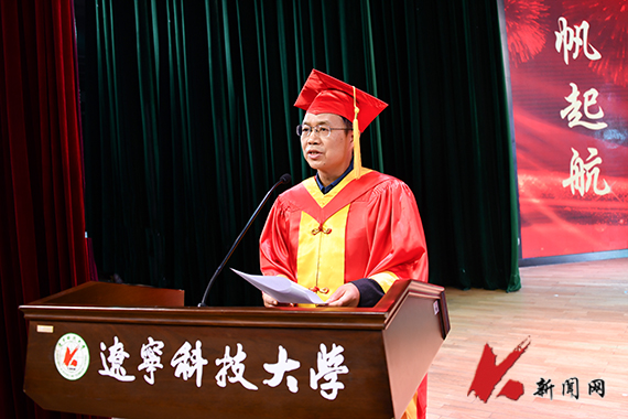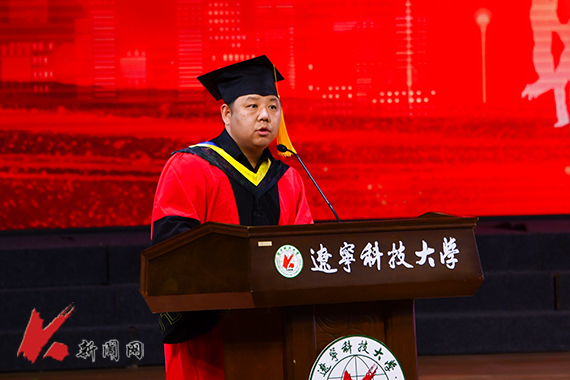 胡軍代表學(xué)校向771名圓滿完成學(xué)業(yè)的畢業(yè)生致以熱烈的祝賀,向孜孜不倦的教師致以最誠摯的敬意,向無私奉獻(xiàn)的家人和朋友們表示最衷心的感謝。他深情回顧了同學(xué)們和學(xué)校共同奮斗、共同成長的過程,表達(dá)了對(duì)同學(xué)們的依依不舍之情。臨別之際,胡軍向畢業(yè)生們提出三點(diǎn)希望:一是希望同學(xué)們堅(jiān)定理想信念,爭當(dāng)肩負(fù)時(shí)代重任的復(fù)興棟梁。要胸懷“國之大者”,擔(dān)當(dāng)使命任務(wù),到新時(shí)代新天地中去施展抱負(fù)、建功立業(yè),為祖國建設(shè)添磚加瓦,為民族復(fù)興鋪路架橋,讓青春在祖國和人民最需要的地方綻放絢麗之花。二是希望同學(xué)們秉承創(chuàng)新精神,爭當(dāng)無愧時(shí)代使命的強(qiáng)國先鋒。要能夠勇?lián)鷷r(shí)代使命,自信自立自強(qiáng),永葆創(chuàng)新熱情,作為具有創(chuàng)新精神和實(shí)踐能力的時(shí)代新人,用自己的熠熠星光和青春力量,建設(shè)更加美好的中國。三是希望同學(xué)們永葆實(shí)干姿態(tài),爭當(dāng)勇立時(shí)代潮頭的中堅(jiān)力量。要始終秉承“勤奮 向上 求實(shí) 創(chuàng)新”的遼科大校風(fēng),在自己的嶄新征途上爭朝夕、積跬步、致千里,在各自崗位上作出不凡貢獻(xiàn),在不懈奮斗中實(shí)現(xiàn)人生價(jià)值,與祖國同心同夢(mèng)、與時(shí)代同向同行,鑄就于國有價(jià)值、于校有光榮、于己有精彩的絢麗人生。