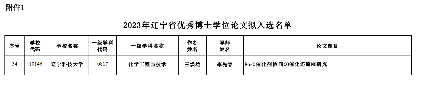 李先春教授指導(dǎo)的博士畢業(yè)生王煥然所撰寫的論文《Fe-C催化劑協(xié)同CO催化還原NO研究》,獲評省優(yōu)秀博士學(xué)位論文,這是繼2022年學(xué)校實現(xiàn)省優(yōu)秀博士學(xué)位論文零的突破后,連續(xù)3年獲批省優(yōu)秀博士學(xué)位論文;省優(yōu)秀碩士學(xué)位論文數(shù)量也從2021年和2022年的獲評5篇和6篇提升至2023年的7篇。