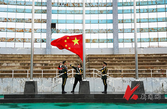 6點(diǎn)30分,升旗儀式正式開始。升旗手執(zhí)旗,國旗護(hù)衛(wèi)隊(duì)護(hù)送著五星紅旗,踏著堅(jiān)毅的步伐邁向升旗臺(tái)。伴著國歌,五星紅旗冉冉升起,全體人員莊嚴(yán)肅立,面向國旗行注目禮。