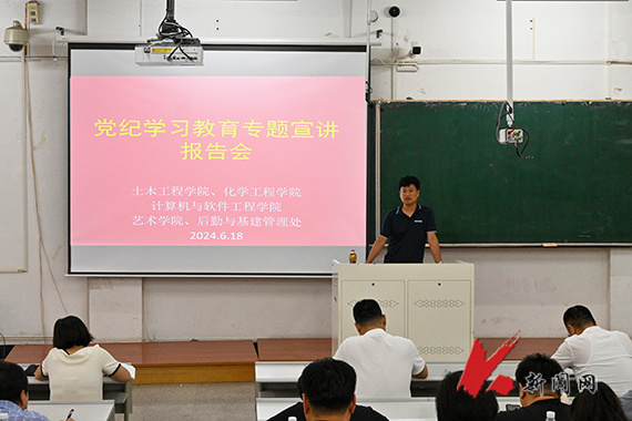 化學(xué)工程學(xué)院、土木工程學(xué)院、計(jì)算機(jī)與軟件工程學(xué)院、藝術(shù)學(xué)院、后勤與基建管理處的全體教工黨員在博學(xué)樓C102會(huì)場(chǎng)參加黨紀(jì)學(xué)習(xí)教育專(zhuān)題宣講會(huì)。學(xué)校黨紀(jì)學(xué)習(xí)教育宣講團(tuán)成員、馬克思主義學(xué)院黨總支書(shū)記陳亮作題為《黨的群眾紀(jì)律、工作紀(jì)律、生活紀(jì)律》的宣講。