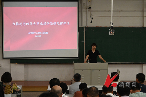 電子與信息工程學(xué)院、外國(guó)語(yǔ)學(xué)院、馬克思主義學(xué)院、創(chuàng)新創(chuàng)業(yè)學(xué)院和圖書(shū)館的全體教工黨員在明德樓A201會(huì)場(chǎng)參加了黨紀(jì)學(xué)習(xí)教育專(zhuān)題宣講報(bào)告會(huì)。學(xué)校黨紀(jì)學(xué)習(xí)教育宣講團(tuán)成員、馬克思主義學(xué)院教師趙俊愛(ài)作了題為《為推進(jìn)黨的偉大事業(yè)提供堅(jiān)強(qiáng)紀(jì)律保證》的主題宣講。