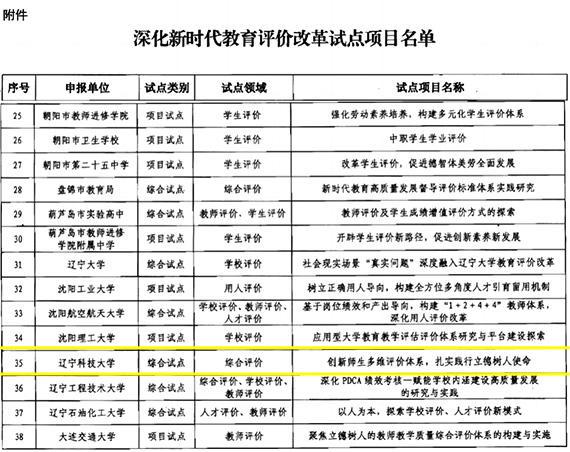 近日,從遼寧省教育廳《關于公布深化新時代教育評價改革試點項目的通知》中獲悉,經各地、各校申報,省級教育行政部門審核把關,最終確定87個深化新時代教育評價改革試點項目。遼寧科技大學“創新師生多維評價體系,扎實踐行立德樹人使命”項目成功獲批2024年遼寧省深化新時代教育評價改革綜合試點項目。