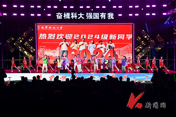 文藝晚會主題為“奮楫科大·強國有我”,分為“炫舞青春”和“燃夢未來”兩個篇章。在激動人心的倒計時和炫彩燈光秀后,研究生、留學生、藏族學生代表和校彩虹啦啦操隊一同登臺,伴隨著悅動的旋律,歌舞《讓我們一起出發》盡顯遼科大學子的青春活力風采;曲藝說唱《這一方熱土》,唱出了鞍山的厚重歷史、地域文化和鋼鐵特色,描繪出了遼科大人接續奮斗、為國奉獻鋼筋鐵骨的生動畫卷;由博士教師組合演唱的歌曲《天地龍鱗》雄渾豪邁、大氣磅礴,唱出了中華民族自強不屈的精神血脈,更唱出了新時代中華兒女奮力推進強國建設、民族復興偉業的堅強意志和美好愿望;創意表演《滄海一聲笑》,融合戲曲、武術、說唱元素,讓人耳目一新;由經法學院新生劉舒揚及家長演唱的歌曲《花開忘憂》唱出了母愛的無私偉大,也用歌聲代表2024級新生為身在遠方的父母送去了惦念和祝愿;街舞《青春未來式》節奏動感、張力十足;國風歌舞《昨夜小樓又東風》如詩如畫,盡顯國風之美;由筑夢合唱團和軍訓教官表演的《強國有我》激情澎湃,青春熱血;相聲《大風車》帶領2024級新生秒回童年,現場笑聲掌聲此起彼伏。