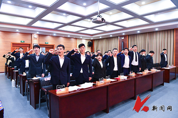 “我志愿成為一名光榮的人民教師,忠誠黨的教育事業(yè),遵守教育法律法規(guī),傳承弘揚教育家精神……”10月12日,在遼寧科技大學(xué)2024年新教師崗前培訓(xùn)開班儀式上,75名新入職教師用鏗鏘有力的聲音莊嚴(yán)宣誓,立志成為“四有”教師,為教育發(fā)展、國家繁榮和民族振興努力奮斗。校黨委常委、副校長李勝利出席開班儀式并講話。教務(wù)處、宣傳部、人事處、學(xué)生工作處、教學(xué)質(zhì)量監(jiān)控與評估中心負(fù)責(zé)人、指導(dǎo)教師代表參加開班儀式。與會領(lǐng)導(dǎo)為新入職教師頒發(fā)了校徽、校章、入職紀(jì)念擺件;為指導(dǎo)教師代表頒發(fā)聘書和鮮花。
