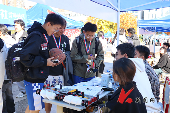 活動當天,博雅廣場人聲鼎沸、熱鬧非凡。各學生社團盡展所能、各出新招,飛揚的海報、炫目的展板、別出心裁的主題游戲、蒼勁有力的書法、高超的滑板技藝、舞動的雙節棍、上下翻飛的花樣跳繩,各個社團以“心”迎“新”,同學們在各個展位交互穿梭,紛紛咨詢。機器人工作室操控可巡回機器人進行對抗展示,科技感滿滿;心浪心理協會將心理知識與“大富翁”相結合,備受新生歡迎;思辯社現場根據辯題展開辯論,唇槍舌劍、你來我往、互不相讓;VShow體育舞蹈協會用動感的舞姿吸引同學們駐足觀賞。西洋樂社團、“暖風”郭明義愛心團隊、子曦書畫社、英豪棒壘球協會……百團大“綻”社團納新活動讓“萌新”們充分領略了繽紛多彩的大學校園文化生活。
