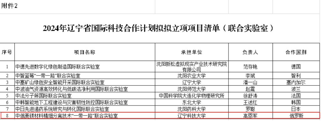 遼科大獲批遼寧省中俄菱鎂材料精細分離技術“一帶一路”聯合實驗室