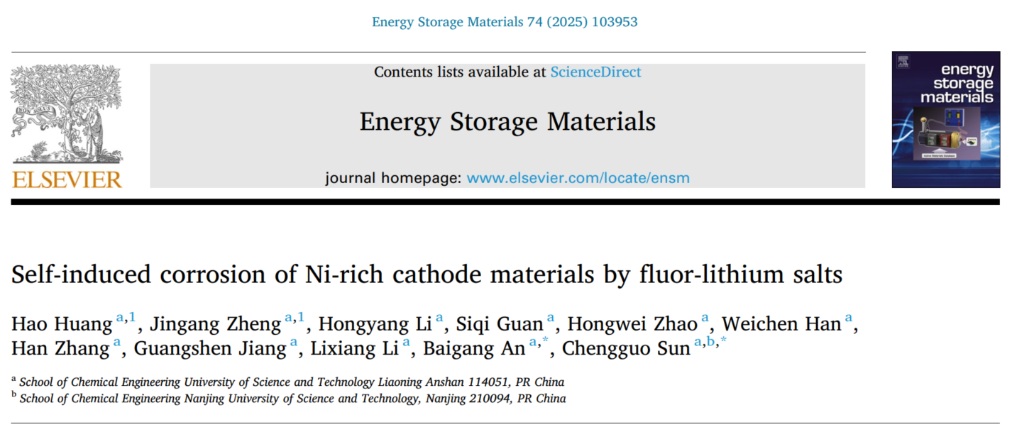 近日,遼寧科技大學化學工程學院“遼寧省能源材料與電化學”重點實驗室孫呈郭教授和安百鋼教授圍繞氟代鋰鹽對于富鎳正極表面相腐蝕的研究工作取得突破性進展。研究成果以《Self-induced corrosion of Ni-rich cathode materials by fluor-lithium salts》為題發表在《Energy Storage Materials》。遼寧科技大學為第一通訊單位,2023級博士黃浩和2020級博士鄭金剛為共同第一作者。該項目得到了國家自然科學基金、遼寧省自然科學基金、遼寧省科技項目、遼寧省教育廳重點項目及遼寧省能源材料與電化學重點實驗室的大力支持。