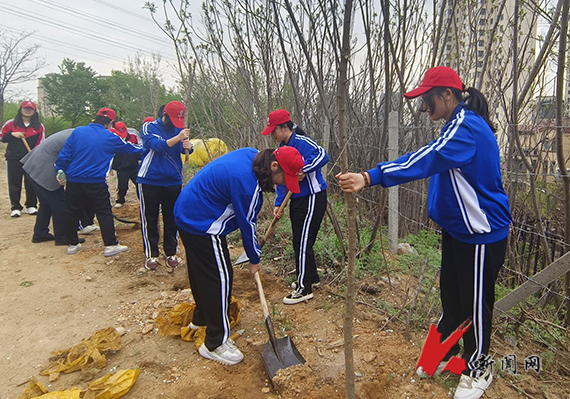 到達植樹地點后,師生迅速分成幾組開始種樹,大家揮鍬挖土、扶苗培土、夯苗澆水……各個環(huán)節(jié)銜接有序。經(jīng)過師生的共同努力,100多棵樹苗挺立在了這片充滿生機的熱土上,承載著大家的希望,為城市增添了新的活力。
