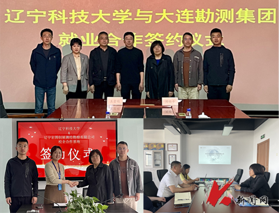 5月9日至10日,遼寧科技大學土木工程學院負責同志帶隊一行3人前往沈陽市和大連市,到遼寧宏圖創展測繪勘察有限公司、大連市勘察測繪研究院集團有限公司和航天宏圖信息技術股份有限公司(大連分公司)3家優質用人單位訪企拓崗,并共同簽約就業實習基地。