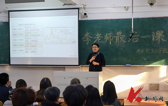活動由學院教學副院長陳燁主持,她介紹了李雙翼的從教經歷,并邀請李雙翼為大家分享從教感受,上職業生涯“最后一課”。課堂上,李雙翼繪聲繪色地講授了“政治經濟學”的內容,針對學生提出的疑問,李雙翼進行了細致解答,這樣平常的一幕更是李雙翼幾十年從教生涯的一個縮影。課后,學生向李雙翼送上了鮮花,學生代表進行發言,向她致以最崇高的敬意與祝福,祝福她的退休生活絢麗多彩。李雙翼向全體師生表達了感謝之情,并結合自身從教生涯,為學生今后的人生道路提出建議。