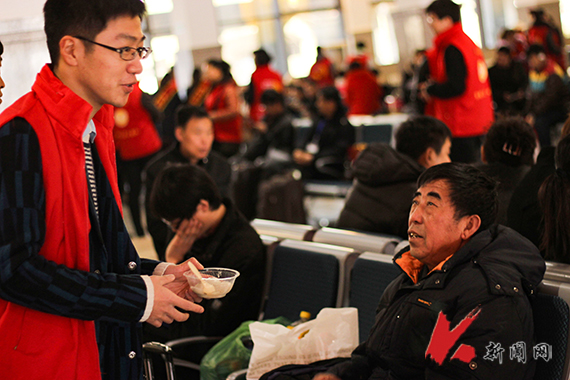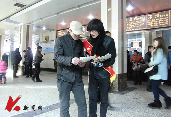 2013年12月21日 遼科大志愿者向旅客解讀文明禮讓宣傳單的內(nèi)容