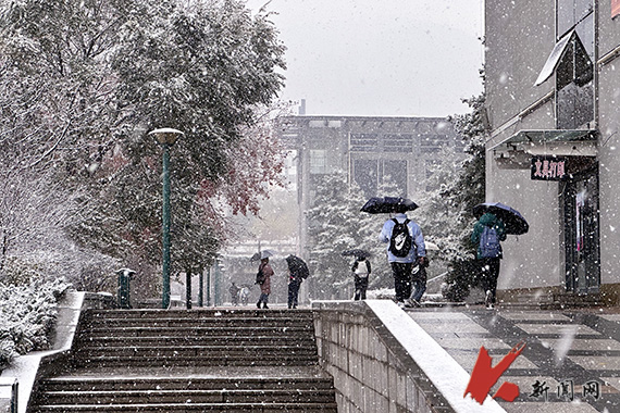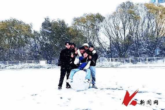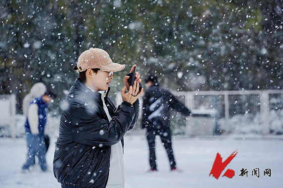 滿天的雪花靜靜落下,時(shí)間仿若在風(fēng)中靜止,校園中的一切猶如一張潔白畫布,師生被定格于此,無意間成為畫中的主角。