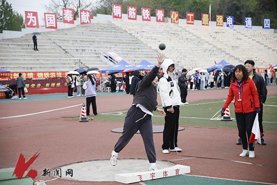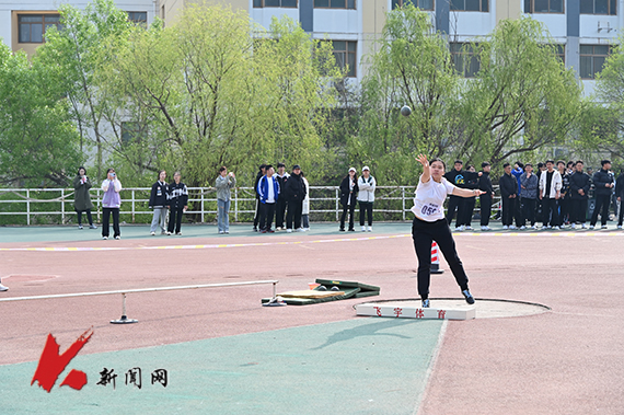 站定、執球、回身彎腰,鉛球擲出,這顆小小的球體寄托著青年學子拼搏向前的希望。