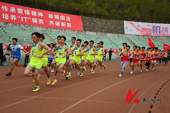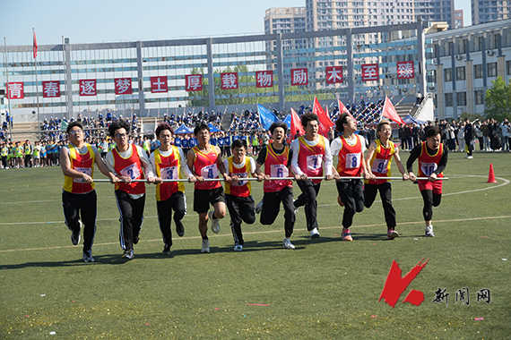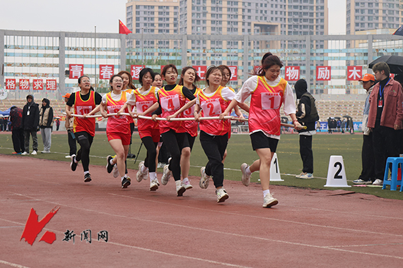 緊握著長(zhǎng)桿,咬緊牙關(guān),繞樁奔跑,盡力沖刺,吶喊著前進(jìn)的口號(hào),他們攜手共進(jìn)。