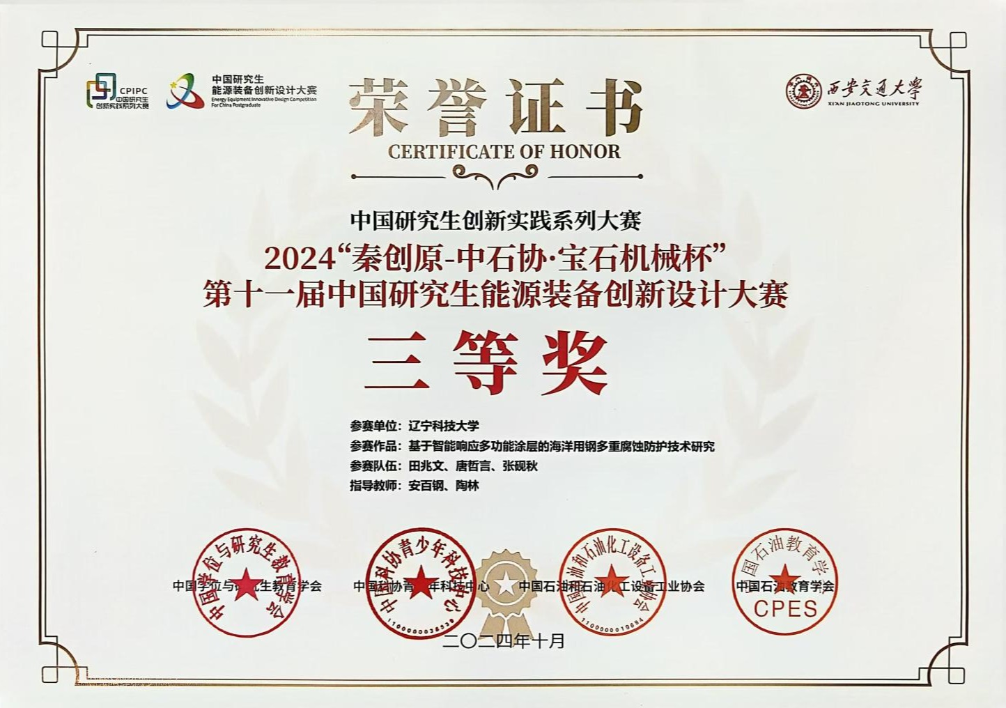 近日,從遼寧科技大學化學工程學院傳來好消息,在剛剛落幕的第十一屆中國研究生能源裝備創新設計大賽中,學校化工學院兩支研究生參賽隊伍分別榮獲一等獎和三等獎。安百鋼教授獲優秀指導教師稱號,學校被授予優秀組織獎。這是學校參加該賽事以來的最佳成績,也是本次大賽中遼寧省唯一獲得一等獎的高校。