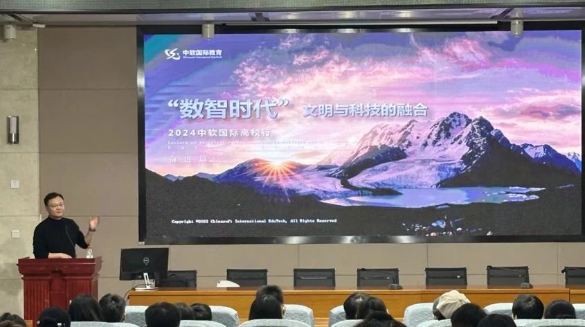 隨著數字化浪潮的席卷,我們迎來了一個嶄新的時代——數智時代。為了幫助學生更好地了解IT產業發展時代特征,明確個人職業規劃,計算機學院特別邀請了中軟國際教育科技集團卓越研究院副院長閻赫先生,于3月12日晚上6點在圖書館報告廳進行一場主題為“數智時代:文明與科技的融合”的專題報告。