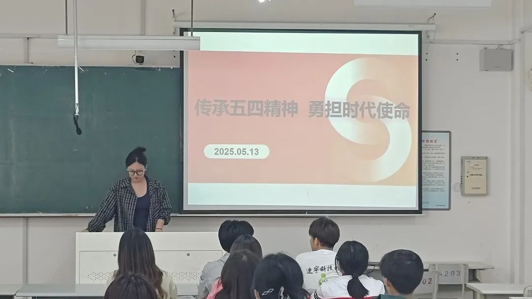 在“傳承五四精神 勇擔時代使命”主題班會上,輔導員結合“五四運動”以來中國青年為國家做出的卓越貢獻,引導學生深刻理解五四精神在新時代的內涵與價值,激勵學生勇擔時代賦予的責任。