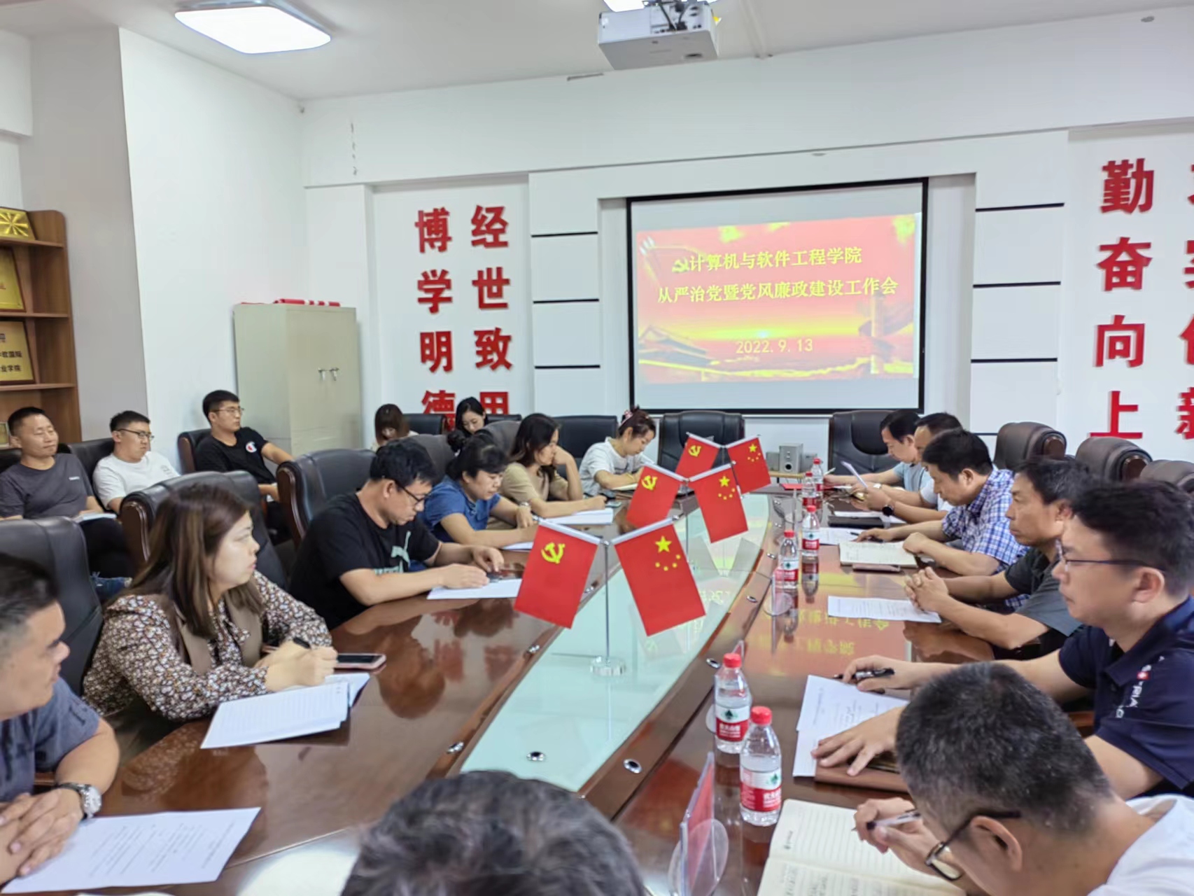 2022年9月13日下午,計算機學院從嚴治黨暨黨風廉政建設工作會在博識樓B327召開,學院領導班子成員、科級以上干部、系(中心)主任、黨支部書記參加會議,會議由院長趙驥主持。