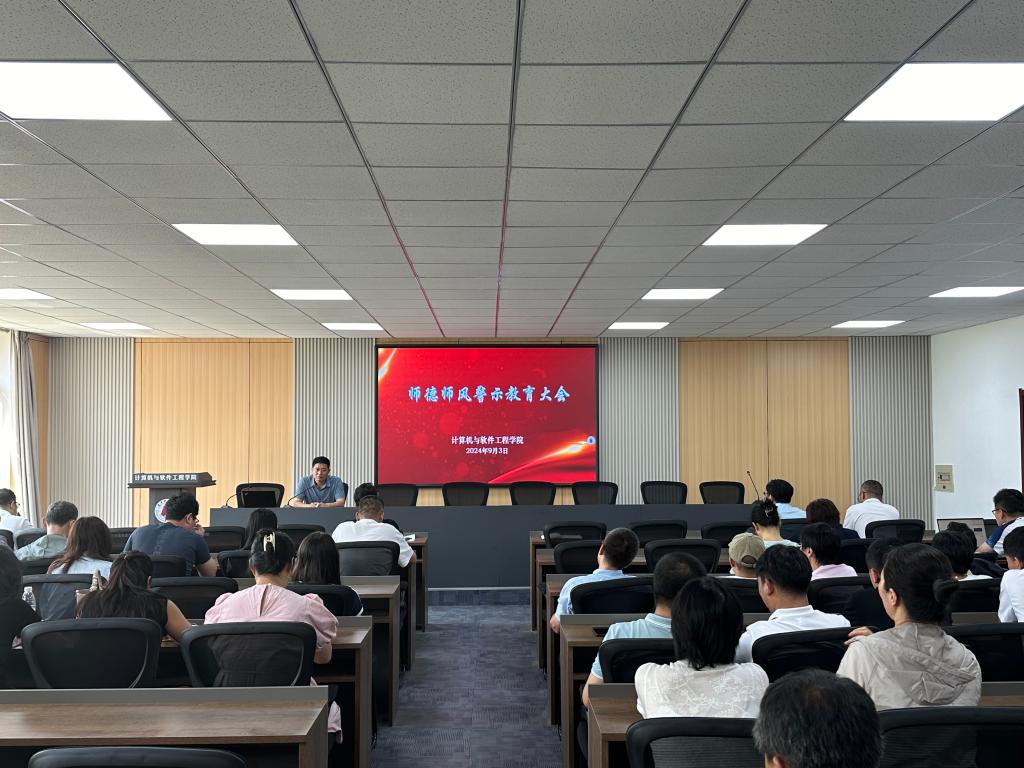 為進(jìn)一步切實(shí)加強(qiáng)師德師風(fēng)建設(shè),弘揚(yáng)教育家精神,9月3日下午,計(jì)算機(jī)與軟件工程學(xué)院在博識(shí)樓335召開(kāi)師德師風(fēng)警示教育大會(huì),會(huì)議由學(xué)院黨委書(shū)記陶潤(rùn)城主持,學(xué)院全體教職工參加會(huì)議。