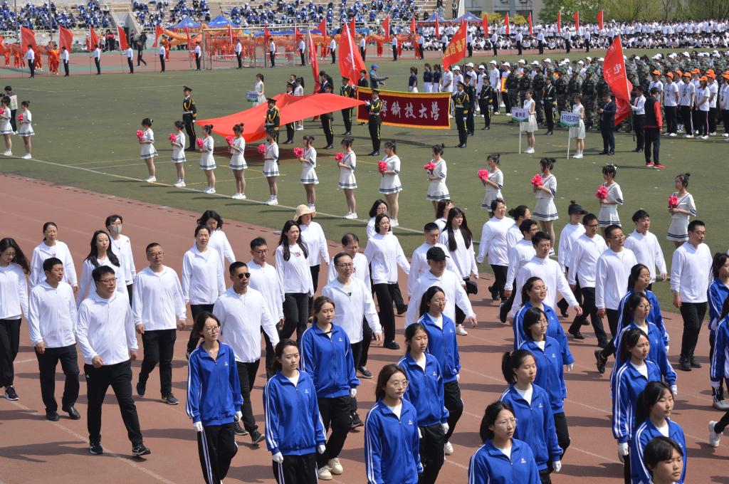 4月29日,學院工會組織32名教職工方塊隊參加學校第五十二屆運動會開幕式檢閱。