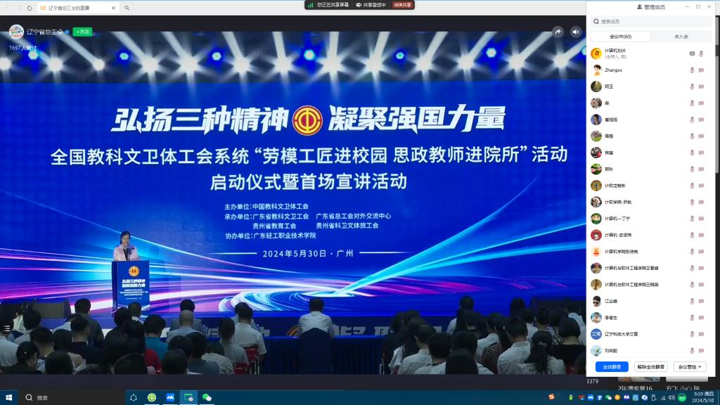 5月30日,學院工會組織觀看全國教科文衛(wèi)體工會系統(tǒng)“勞模工匠進校園 思政教師進院所”活動啟動儀式暨首場宣講活動,69名教職工參與。