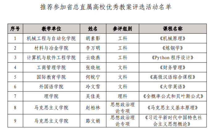 推薦參加省總直屬高校優秀教案評選活動1項。