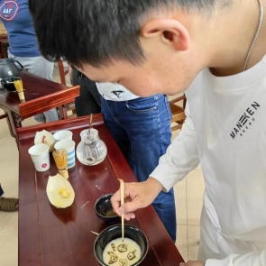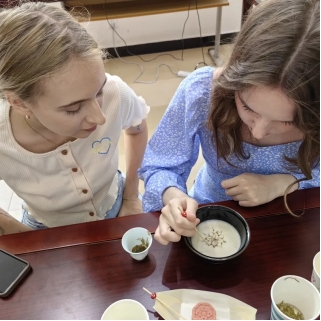 在認真觀看學習了選茶、燒水、溫壺、置茶到點湯、分茶等一系列茶藝流程后,同學們在專業老師的指導下紛紛動手嘗試點茶。他們拿起茶筅,在茶碗中攪拌茶湯,體驗著中國茶文化的獨特韻味。來自俄羅斯的如雪同學說:“我很喜歡中國茶。中國茶道強調靜心、修身,在制茶的過程中,我能夠感受到內心的寧靜和放松。”