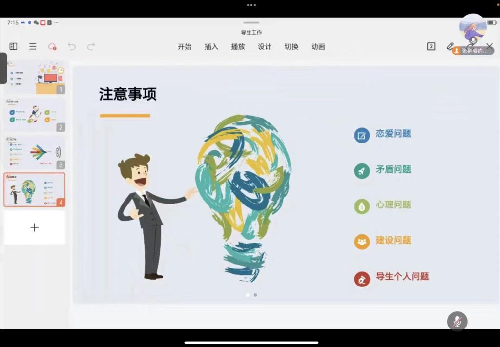 會議首先由2022級班導生朱柯欣和張思博對導生工作進行總結分享,將導生經歷的寶貴經驗和整體工作要點分享給大家。然后輔導員張翀睿對班導生工作從三個方面進行了明確,一是要求班導生從思想和態度上認識到工作的重要性,強調了工作期間的各項紀律;二是明確了班導生的工作職責和工作內容,在工作過程中要做好新生的引路人;三是根據班導生工作分別從戀愛、矛盾、心理、班級建設以及班導生個人問題這5個方面提出了注意事項。