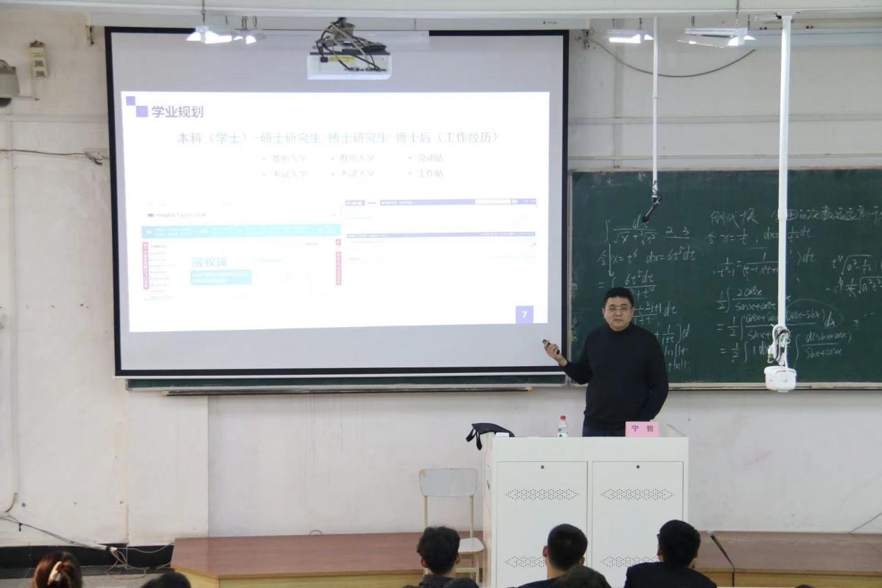 寧哲博士以“就業(yè)引航筑未來,青春建功新時代”為主題,為現(xiàn)場的同學(xué)們開展學(xué)業(yè)規(guī)劃和就業(yè)指導(dǎo)講座。報告中,寧哲教授結(jié)合我校冶金工程專業(yè)的的發(fā)展歷程、研究方向、師資隊伍、專業(yè)特色及取得的主要成就,讓同學(xué)們對在自己所學(xué)專業(yè)有了更清晰全面的認識,從而更好地選擇自己的學(xué)習(xí)方向和職業(yè)規(guī)劃。其次,以升學(xué)為發(fā)展目標,為同學(xué)們詳細介紹了考研的基本流程、備考方法、考試技巧等方面,讓同學(xué)們?yōu)槲磥淼目佳猩钤熘纷龊贸浞譁蕚洹W詈螅鶕?jù)當前冶金行業(yè)的發(fā)展狀況重點分析了近年來冶金工程專業(yè)的就業(yè)形勢、薪資待遇和職業(yè)發(fā)展路徑,激發(fā)學(xué)生對職業(yè)規(guī)劃和未來發(fā)展的深入思考和精準規(guī)劃。