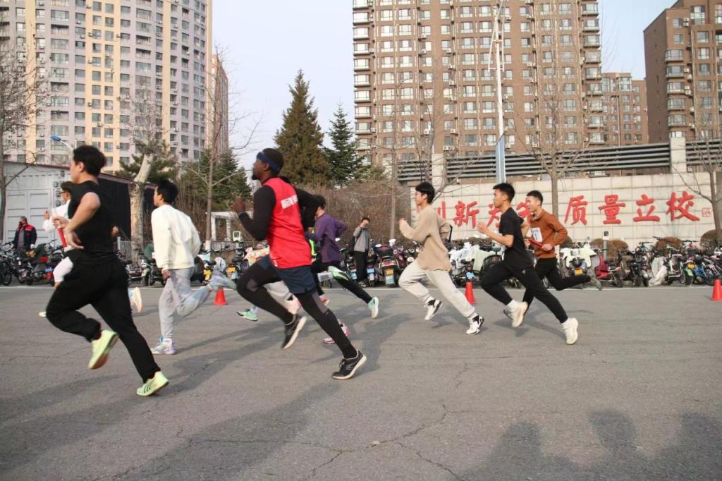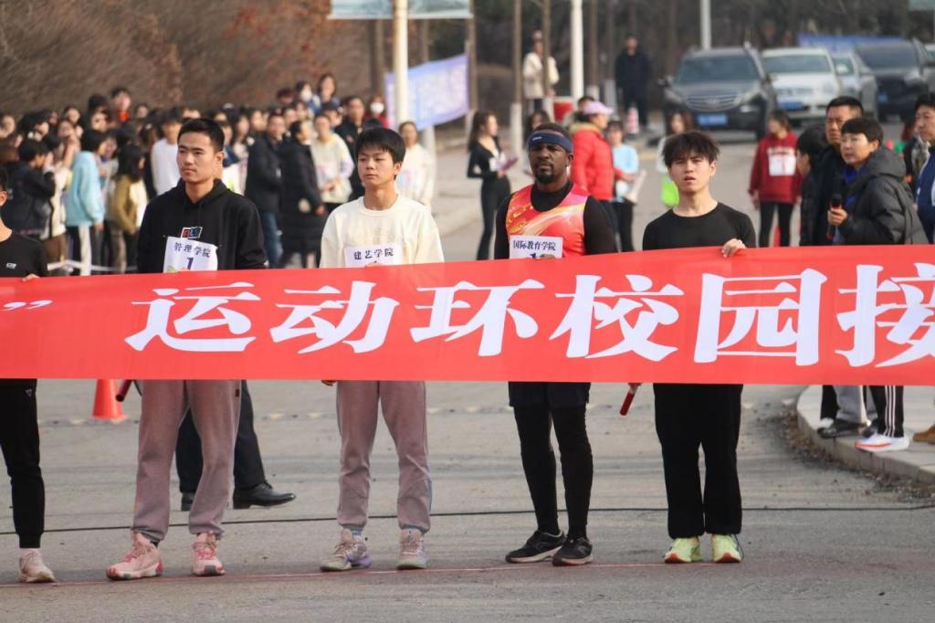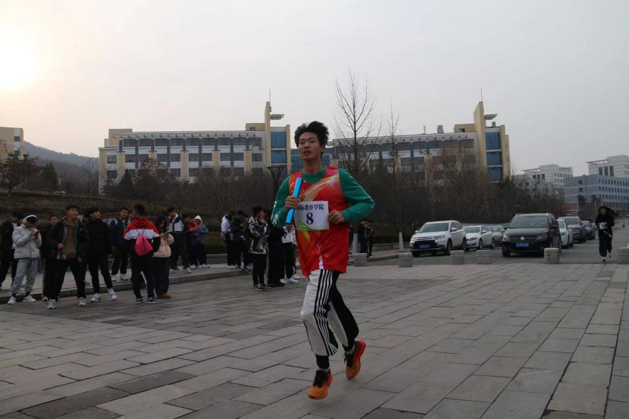 12月8日,遼寧科技大學在博雅廣場開展一二·九長跑接力賽,國際教育學院運動員積極參與。