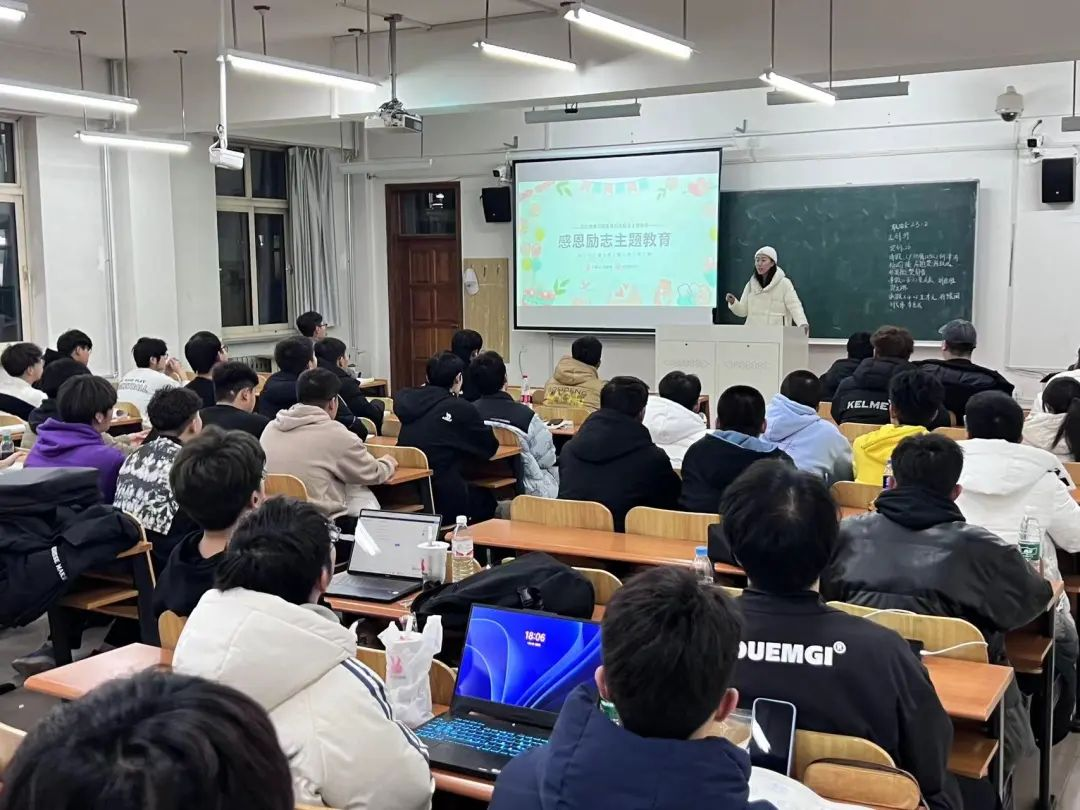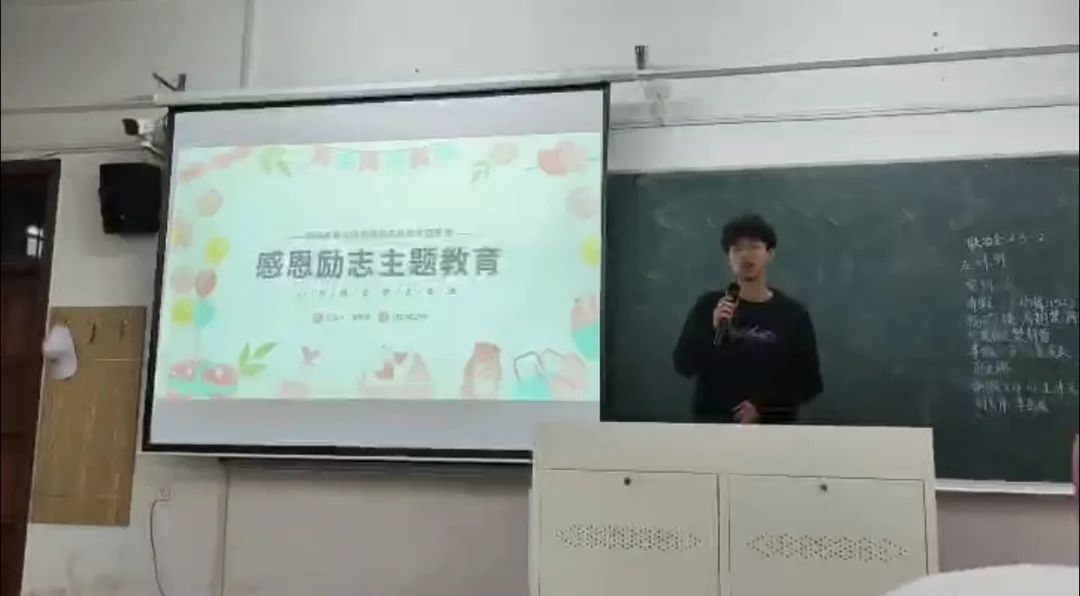 隨后聯(lián)冶金22-1班班長(zhǎng)戴興旺通過(guò)趣味問(wèn)答、經(jīng)歷分享等方式對(duì)同學(xué)進(jìn)行了感恩教育,并鼓勵(lì)同學(xué)們要積極樹(shù)立目標(biāo)、勵(lì)志奮進(jìn)。