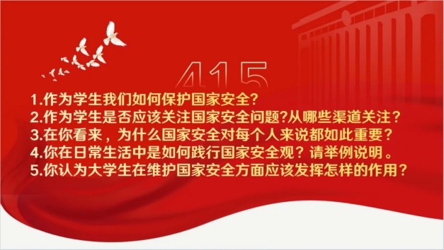 2024年4月,國際教育學院采用線上線下雙線并行的方式開展了系列主題班會、國家安全知識采訪以及國家安全知識調查問卷,并通過鼓勵同學們制作國家安全海報等方式成功地向同學們普及了國家安全的相關知識。