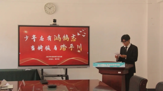經過學生個人申報與學院評議,5名同學進入了最后的答辯環節。他們圍繞思想道德、學業成績、創新能力、社會實踐等方面進行答辯,答辯過程緊張而有序。隨后評委們針對每位答辯者的匯報進行深入提問,確保對每位候選人的表現做出公正、客觀的評價。副院長鄭云超對本次答辯會進行點評和總結,他對同學們取得的優異成績表示高度贊賞,并勉勵大家堅定理想信念,期望同學們在未來的學習和生活中繼續保持奮發向上的精神,發揮青年榜樣的力量,激勵更多學子自強不息、追求卓越。