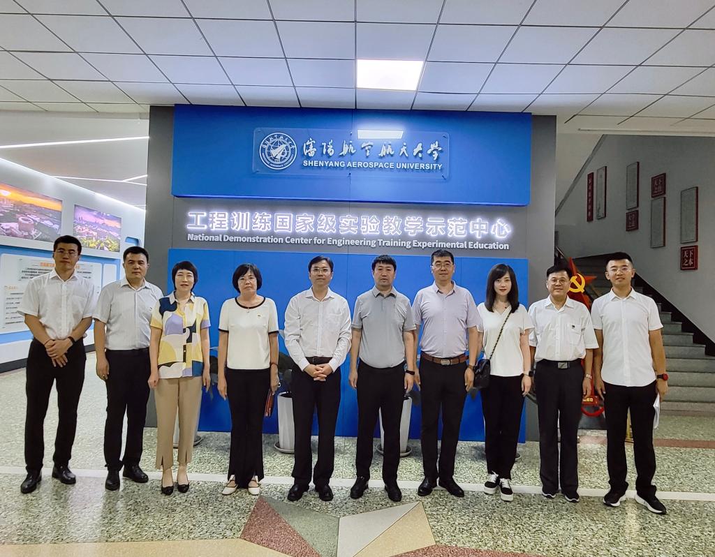 在沈陽航空航天大學,走訪調研成員受到學校黨政負責同志的熱情接待,在學校副校長張業偉的陪同下,先后參觀了遼寧通用航空研究院、航空工程綜合實訓中心、工程訓練中心,細致調研各單位構筑“大思政”格局,將科學報國、科技強國融入教育教學、科研實踐全過程的思路和途徑。工程訓練中心傳承學?!百s續紅色血脈,厚植藍色情懷”發展理念,依托紅、藍、橙三色打造黨史學習教育、航天航空發展歷程教育、主題教育三個實踐教學基地的創新舉措成效顯著,一行人與中心負責同志深入交流,詳細了解中心構建的“123456”黨建工作體系,并觀看了學生們將紅色血脈與實習實踐結合后完成的創意作品;之后專程前往學?!耙徽臼健贝髮W生智慧服務社區建設現場,圍繞智慧社區建設、職能板塊劃分、學生服務模式等進行互動研討。