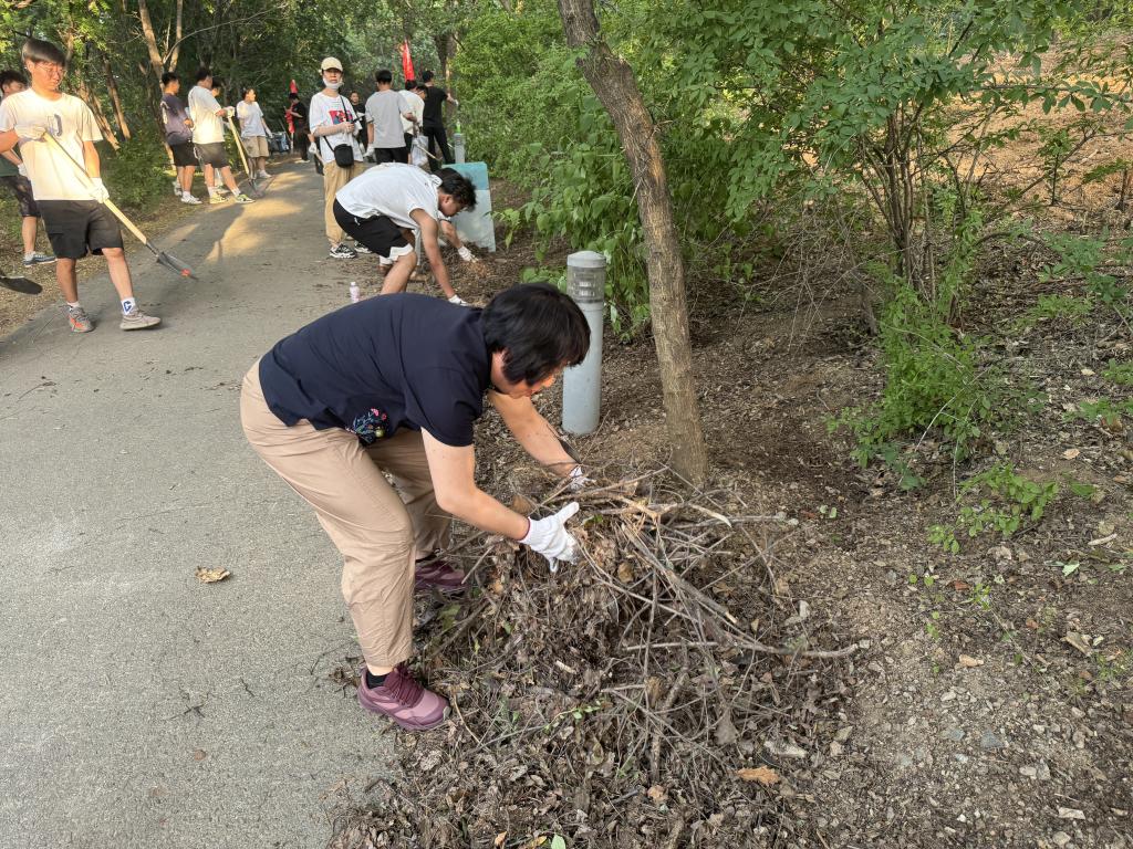 活動中,畢業生黨員們踴躍參加,頂著燃燃烈日,帶著勞動工具,沿著校園后山山路認真清掃,撿拾垃圾,平整坑地,愛校如家見行動,為保護清潔環境貢獻自己的一份力量,營造了一個更加整潔、美麗的自然環境,也展現了他們的團結協作和環保意識。畢業生黨員康婷同學表示,通過這次清掃志愿服務活動,“我更加深刻地理解了黨員的責任和擔當,感謝母校四年的培養,希望自己在離校前再為母校多做點事,以實際行動回報母校。”