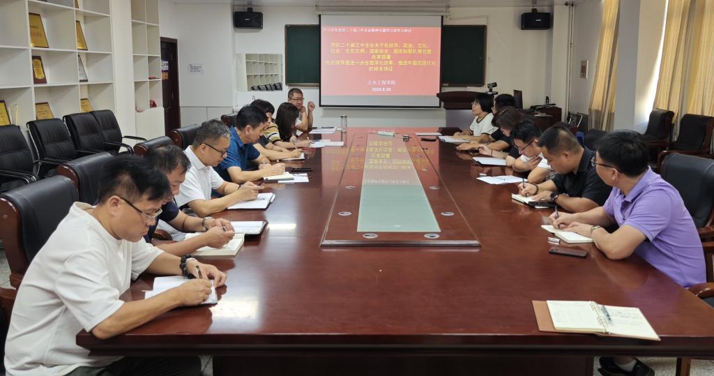 8月30日,按照學校學習宣傳黨的二十屆三中全會精神學習班安排,圍繞“黨的二十屆三中全會關于在經濟、政治、文化、社會、生態文明、國家安全、國防和軍隊等方面改革部署”和“黨的領導是進一步全面深化改革、推進中國式現代化的根本保證”兩個內容,遼寧科技大學學習宣傳黨的二十屆三中全會精神學習班組織開展第二次學習研討。土木工程學院黨委認真組織領導班子、科級干部、黨支部書記、各系室主任等成員,結合工作實際深入進行交流,吃透會議精神,直面工作問題,提振創業士氣。