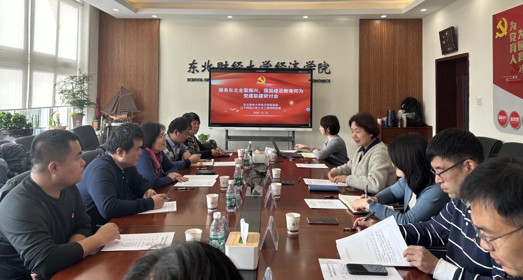 12月12日,遼寧科技大學土木工程學院一行5人赴東北財經大學經濟學院勸學樓327會議室開展“服務東北全面振興,強國建設教育何為”黨建聯創共建線上線下研討會,東財經濟學院黨委書記秦麗紅、副書記王金蕾、副院長谷宏偉和陳飛、教工第二黨支部全體委員等8人參會,遼科大土木學院周曉平書記、各黨支部書記、教工測繪黨支部和建環黨支部黨員參加。
