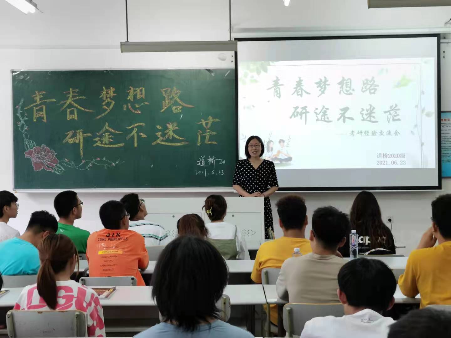作為道橋2020-2班的班主任,真心關愛每一名學生,通過迎接新生,走訪寢室,查看早、晚自習的學習情況,搭建起與學生溝通交流的平臺。組織召開“三比一促一傳承”活動,促進學生成長與發展,提醒同學們不要“等、靠、要”,要培養自身獨立意識,對自己負責。通過“青春夢想路,研途不迷茫”考研經驗交流會,幫助學生掌握相關考研技巧,增強學生考研信心,明確考研目標。召開“誠信考試”主題班會,樹立道德新風,教導學生誠信考試、誠實做人。掌握班級的整體學習成績,針對各科中不及格成績,查找原因,單獨找班長、學委和一些同學進行談心活動,了解班級學習氛圍,針對個人情況不同,進行了具體原因分析,提出改進措施,要求學生制定學習計劃,并督促執行。