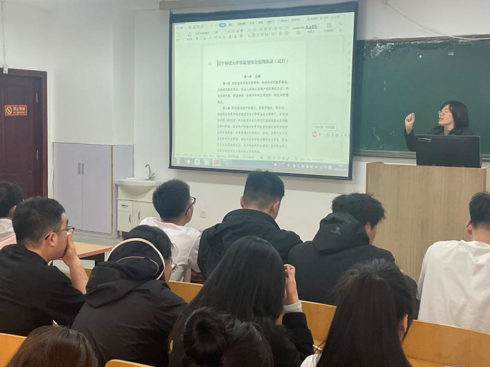 周曉平解讀“八個凡是”、“六個一律”、“三不一要”安全提示,并領學《遼寧科技大學實驗室管理辦法》《遼寧科技大學消防安全管理規(guī)定》《遼寧科技大學校園道路交通安全管理辦法》等有關安全制度。安全教育班會上對研究生強調(diào)了以下幾點要求:一是要認真學習實驗室安全、消防安全、校園道路交通安全的規(guī)定,熟悉安全手冊知識,并嚴格執(zhí)行;二要加強對廢氣、廢液、廢渣和噪聲的處理與排放的管理,嚴禁在實驗室內(nèi)大聲喧嘩、抽煙﹑吃食物和亂丟垃圾,禁止污染環(huán)境,禁止帶無關人員進入實驗室等,提升同學們安全意識;三要養(yǎng)成良好的行為習慣,使用危險化學品、放射性物品、特種設備要按規(guī)程操作,使用時應在教師詳細指導下進行,采取必要的安全防護措施。