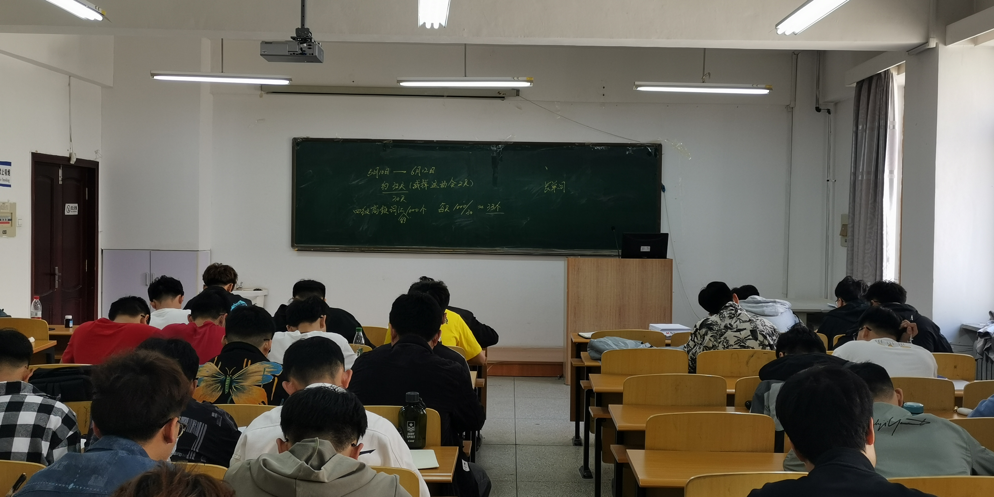 此次集訓,結合了前期調研情況,學院提供2個大教室,組織無課同學集中背單詞、做模擬題并邀請任課教師進行針對性輔導答疑,開展日次考單詞、周次模擬考試等方式,形成全員參與備戰四級的合力。集訓動員中,學院黨委副書記張國華結合四級通過的重要性、企業用工需求的特點及部分同學與目標企業失之交臂的原因分析進行講解,并提醒同學們“高頻詞匯約1000個,每天背誦35個左右單詞便可以輕松拿下,學院的集訓就是要倒逼大家形成自律自覺意識,希望同學們沉下心戰勝自己,全力拿下四級”。