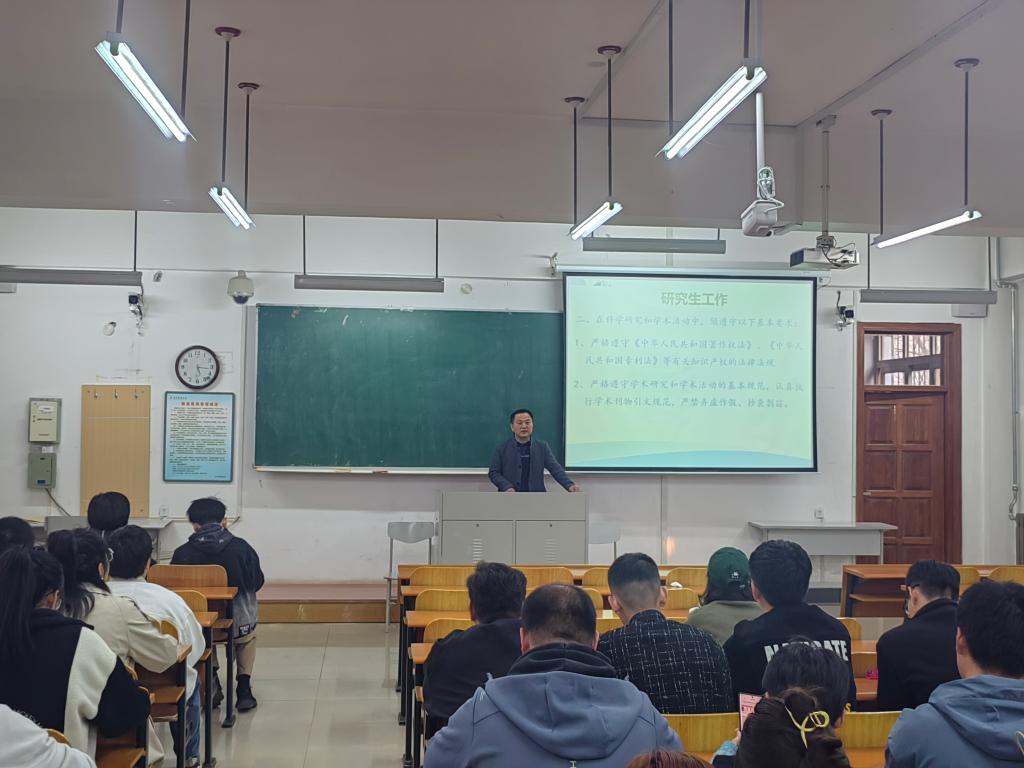 報告主要圍繞教育部發布的相關文件、學校研究生部的相關制度、科學研究和學術活動應遵守的基本要求進行講解。重點涵蓋科學研究和學術活動中應遵守的學術規范、違反學術道德規范的行為、對違反學術道德規范的處分、提升研究生思想道德修養與綜合素質等幾方面內容。周曉平書記就研究生未來職業規劃提出建議與意見,對學生日常行為規范明確具體要求。