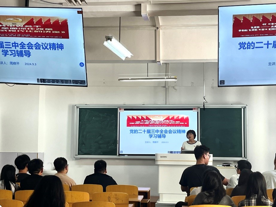 9月3日,土木工程學院黨委為深入實施“時代新人鑄魂工程”,教育引導研究生增強踐行“兩個維護”的高度自覺、堅定愛國奮斗挺膺擔當,以實際行動迎接中華人民共和國成立75周年,黨委書記、輔導員周曉平在土木樓A508為研土木22、23級研究生作了《學習宣傳黨的二十屆三中全會精神》輔導報告。周曉平教授重點講述《中共中央關于進一步全面深化改革、推進中國式現代化的決定》的三部分內容,一是進一步全面深化改革、推進中國式現代化的重要意義和總體要求,二是從經濟、政治、文化、社會、生態文明、 國家安全、國防和軍隊等方面部署改革,三是加強黨對改革的領導、深化黨的建設制度改革、黨風廉政建設和反腐敗斗爭。此次學習輔導加深了同學們對《決定》的理解,為今后青年學生的職業規劃、學習發展指明了方向。