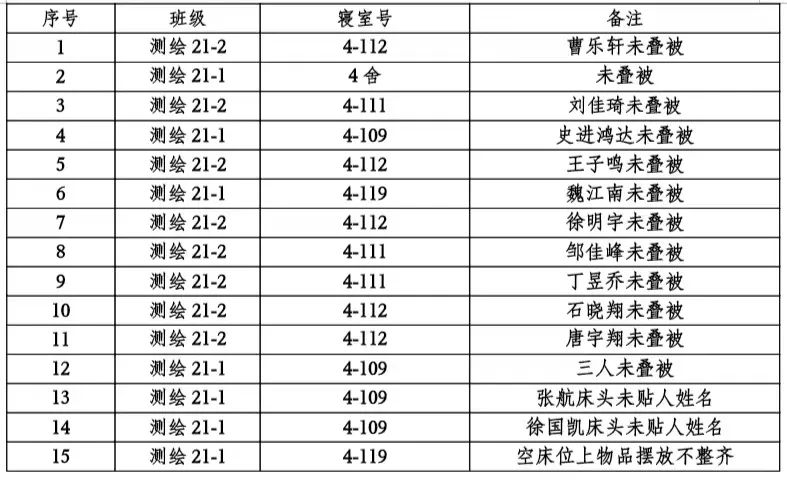 為開展“新學期 新氣象”學生宿舍大清掃活動,學生工作處全體人員及本科生輔導員于10月12日及10月13日對本科生宿舍進行檢查,我院檢查結果如下。