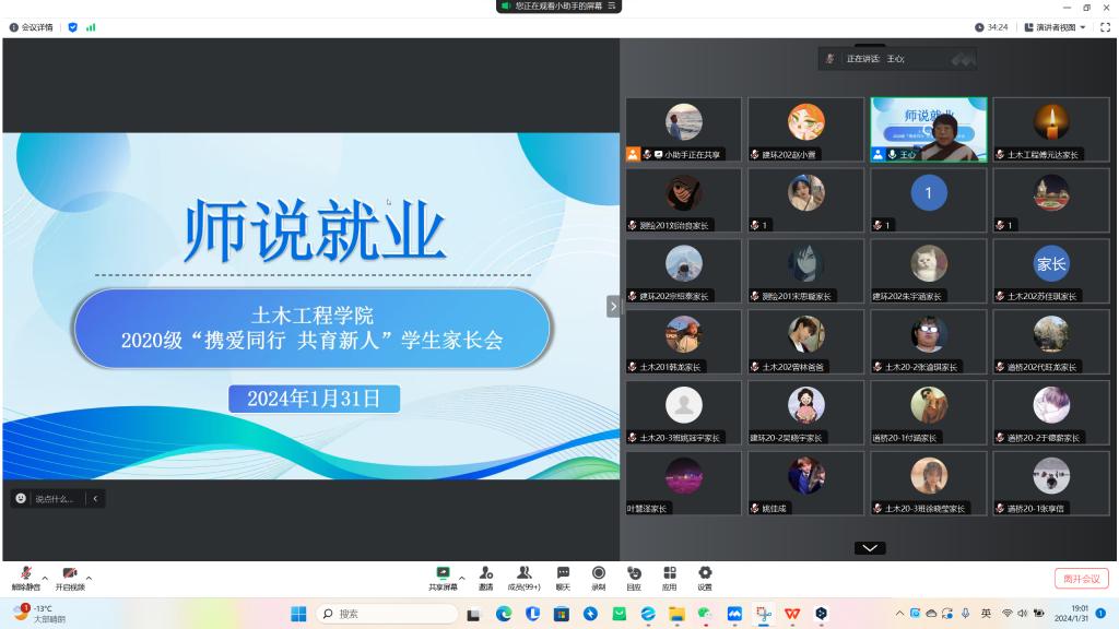 2月1日,遼寧科技大學(xué)土木工程學(xué)院“家校共育,共促就業(yè)”家長會(huì)于線上召開,學(xué)院院長周衛(wèi)紅教授應(yīng)邀出席并圍繞職業(yè)生涯規(guī)劃和就業(yè)指導(dǎo)等內(nèi)容展開宣講,2024屆畢業(yè)班輔導(dǎo)員、全體畢業(yè)生及家長參加會(huì)議。