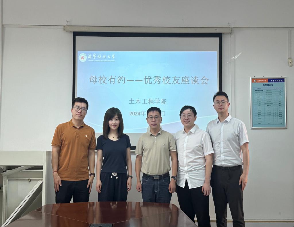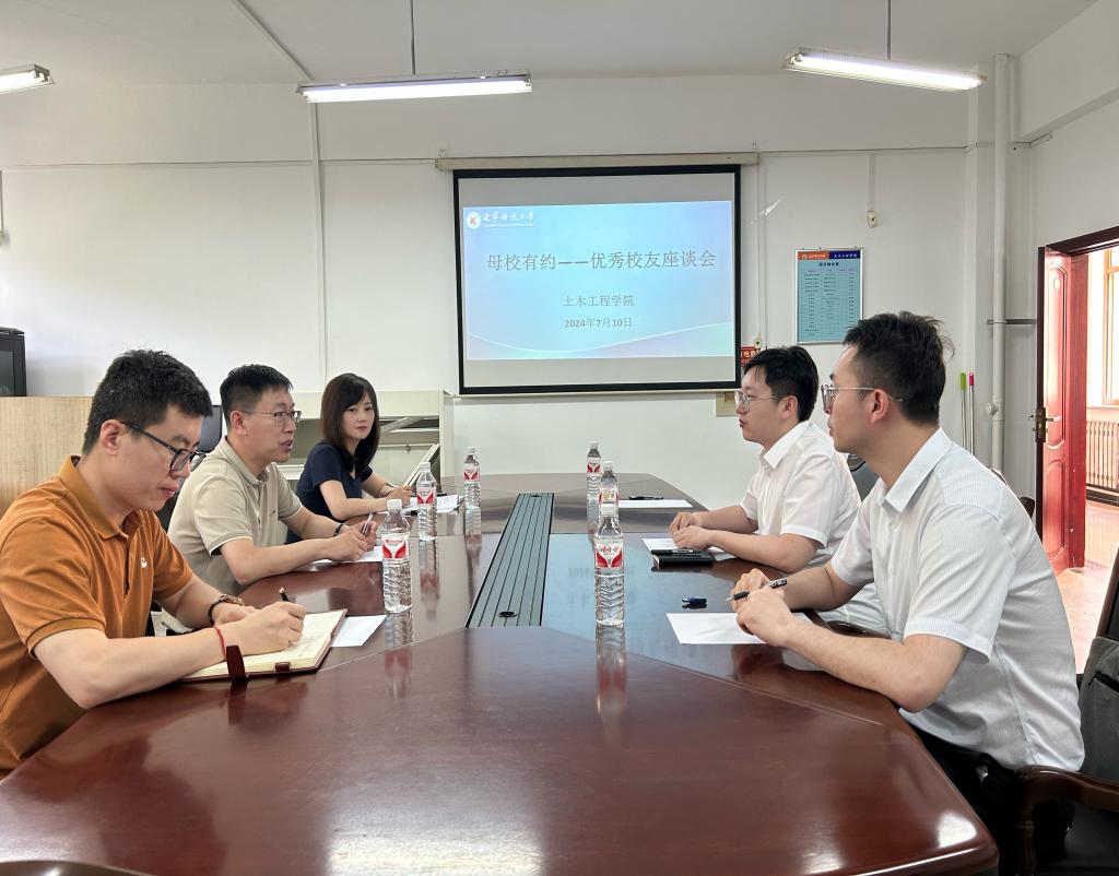 7月10日,遼寧科技大學土木工程學院于博觀樓A312會議室舉行“母校有約”——優(yōu)秀校友座談會。中鐵北京工程局商務(wù)管理部部門負責人、土木2014屆優(yōu)秀校友蘇陽受邀重返母校,共憶往昔歲月,再敘師生情誼,共話學院發(fā)展。學院領(lǐng)導班子成員、校友工作相關(guān)負責同志參加座談會。