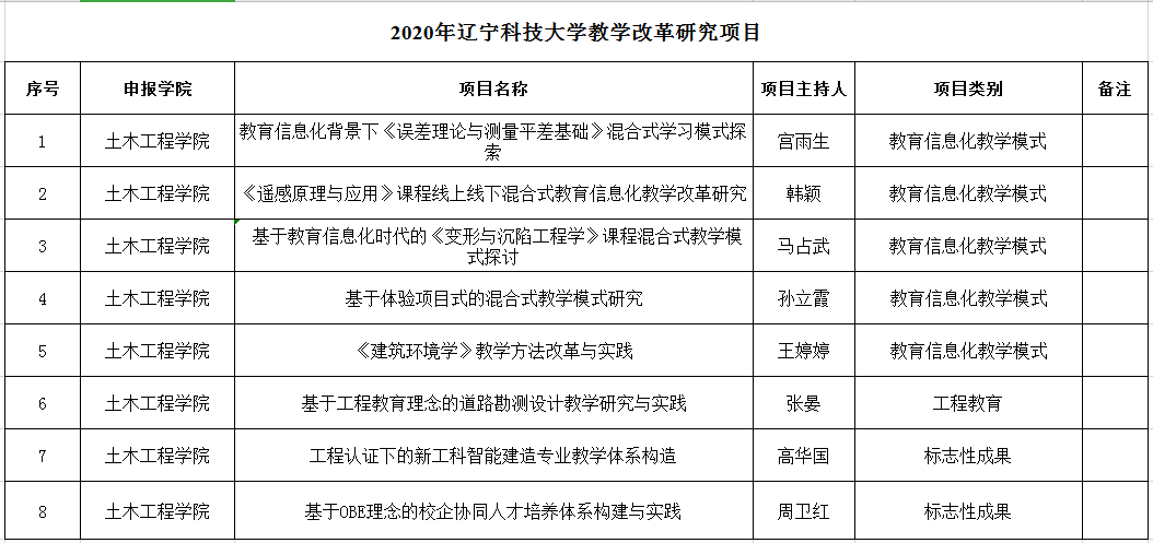 2020年遼寧科技大學教學改革研究項目推薦匯總表