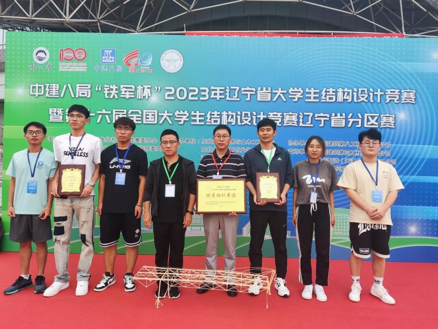 2023年8月24日至28日,由全國大學生結構設計競賽委員會、遼寧省土木工程專業教學指導委員會和遼寧土木建筑學會主辦、東北大學承辦的中建八局“鐵軍杯”2023年遼寧省結構設計競賽暨第十六屆全國大學生結構設計競賽遼寧省分區賽在沈陽市東北大學圓滿閉幕。本屆大賽共吸引來自25所高校的51支精英隊伍參加,土木學院教師李吉人指導的劉健、丁晟軒、李俊峰團隊獲省大賽一等獎,李建強指導的邱永康、周鑫聰、焦杰團隊獲二等獎,遼寧科技大學獲優秀組織單位。