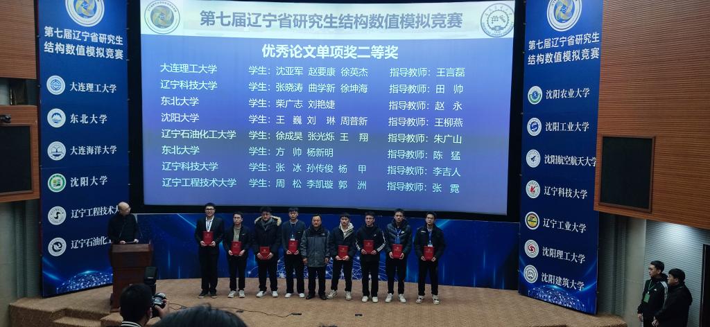 本競賽是2023年遼寧省研究生教育教學改革“創新與學術交流中心”資助項目,由“遼寧省土木工程研究生創新與交流中心”主辦、沈陽建筑大學承辦的面向全省各高校在讀研究生開展的創新性競賽活動。本次總競賽共吸引了來自省內13所高校40個參賽團隊的百余名研究生參加,競賽分為校內選拔賽和決賽兩個階段。我校土木學院研究生代表隊經校內評比、論文盲審選拔,共選派四組團隊參加總決賽,最終經過兩天激烈的角逐,遼科大學子在第七屆遼寧省研究生結構數值模擬競賽獲得總成績二等獎一項和優秀論文二等獎兩項、三等獎一項的優異成績。