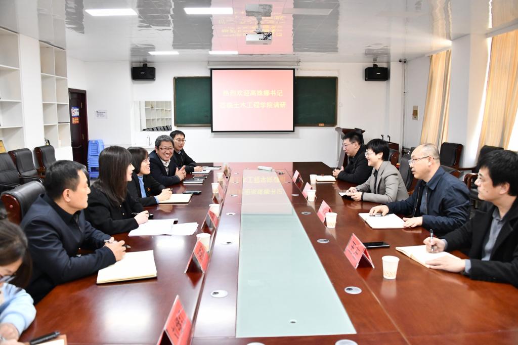 3月20日,校黨委常委、紀委書記高姝娜,紀委副書記金福堯等一行到土木工程學院開展調研。學院黨委書記周曉平、院長周衛紅、紀委書記王一、副院長高華國、張鐵志參加座談并陪同走訪調研。